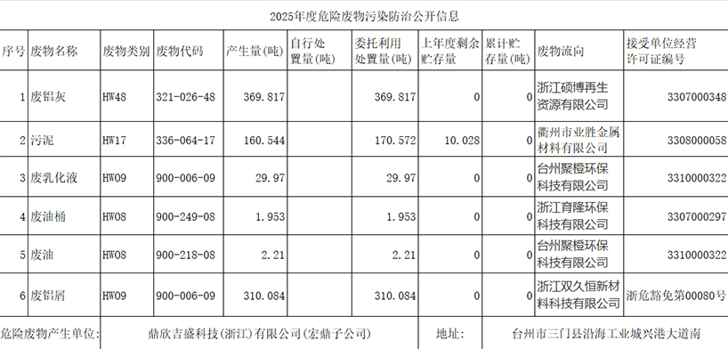 2025年度危險廢物污染防治公開信息